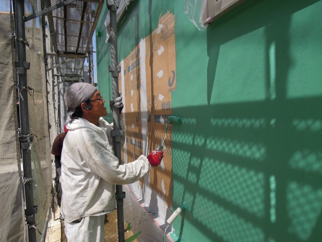 下地工事が長引いたため、午後から仕上げスタートです。