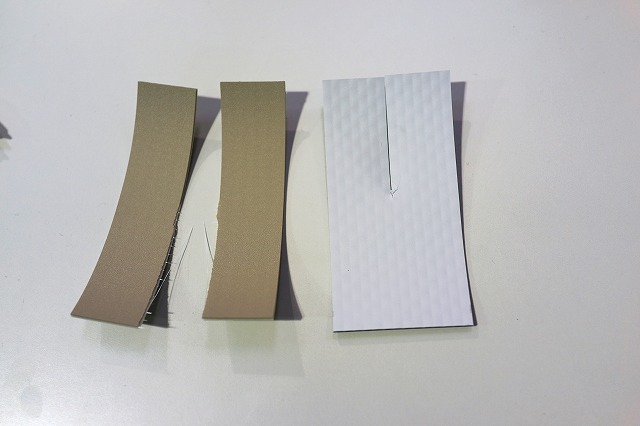 切り込みを入れたシートを準備して、日本製品(1.5mm)とサーナルーフ(1.2mm)の切り裂き実験実験。
