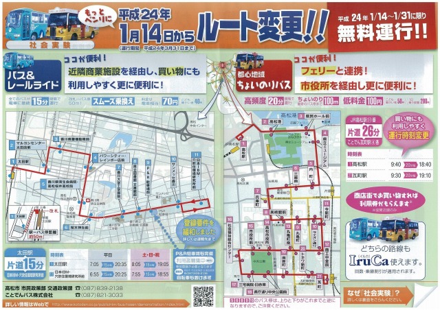 高松の中心地で、「ちょいのりバス」が、社会実験として運行されている。