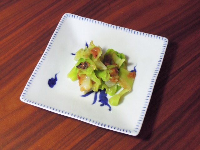 料理といっても、茹でたキャベツに出汁と合わせて和えるだけ。