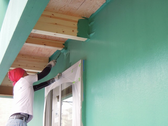 今日で外壁の防水工事が終わります。