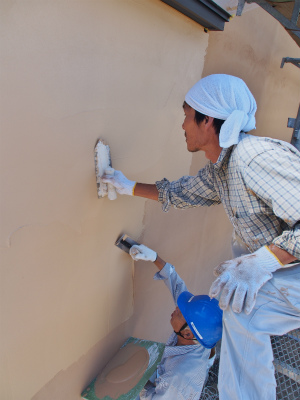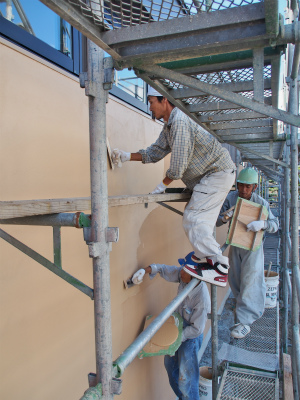 で左官の作業は、上から下へと作業を進めるため、