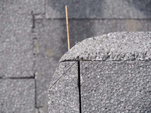 構造断面が正方形でも、表面をアール加工した断熱材を貼り付けるだけで完成します。