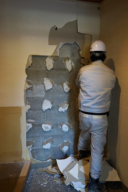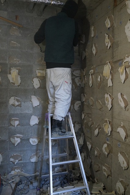 向かって右の壁は、外壁側なので構造体、つまり鉄筋コンクリート造です。