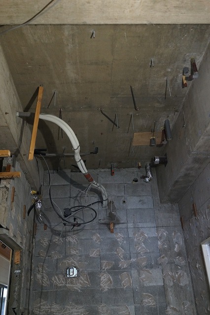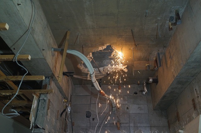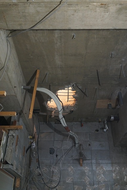 当然ながら、スラブ(床ですね)に大きな穴を開ける必要があります。