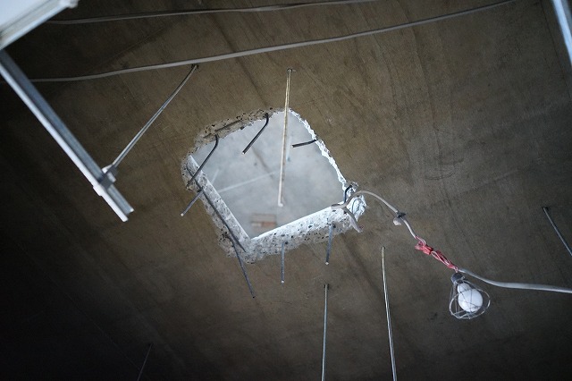 階段で運び出すのでは、時間がかかりすぎるという判断で、穴を開けることにしました。