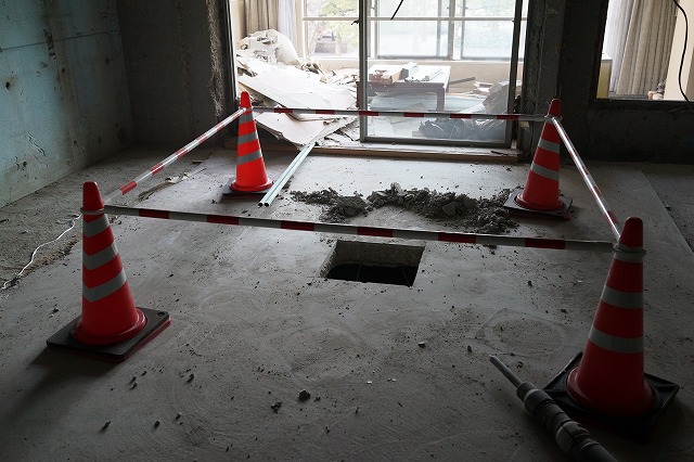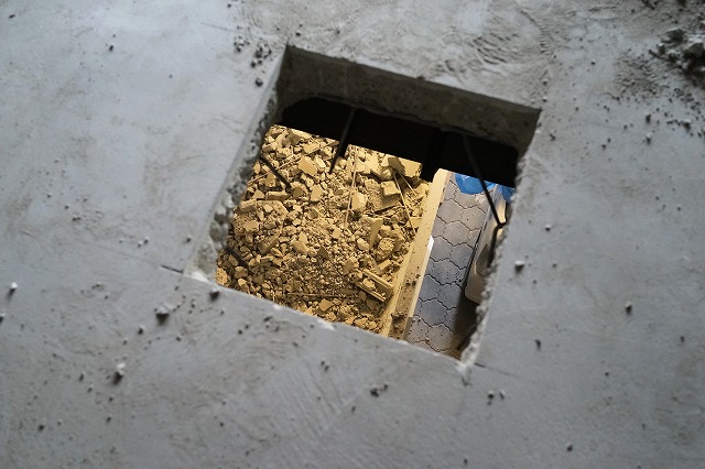 これ、階上の廃材を運び出すために開けた「落とし穴」です。