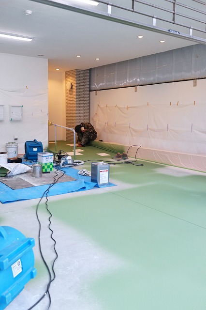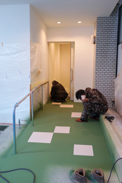 タイルの上に養生テープを貼っているのが分かるでしょうか?
