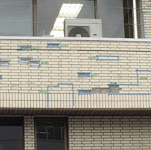 これが「打設検査」した結果、「剥がれそうなタイル」の印です。